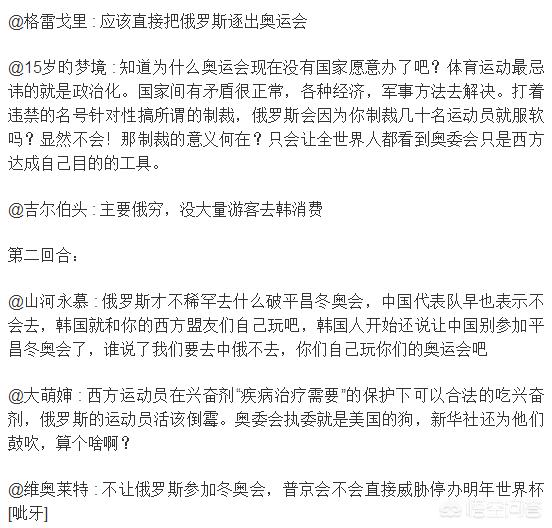 不管怎么说,冬奥会失去俄罗斯的参赛,都是很大的损失,真诚的希望,奥运会不要成为某些国家用来达到政治目的的工具。