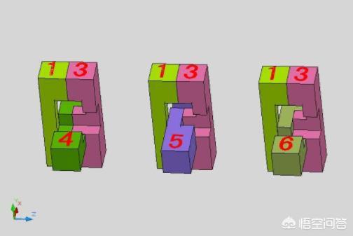 这样3+3也有4种不同的拼法。 于是此6柱组就有8种不同的拼法拼合为锁。