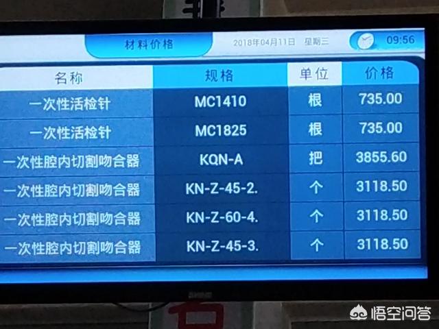 我给大家看一下,我在医院无意间拍到的,医疗器械价格表