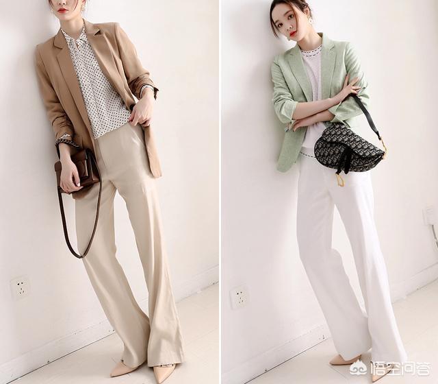 2018年很流行薄荷绿,这一件薄荷绿系列西装外套,我想无论是谁都能穿出气质感,很显嫩显肤白的颜色,里面选择一件白色t恤+白色阔腿裤,既显瘦更有范。