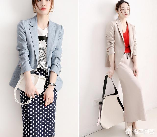 西装外套+半身裙同色系搭配经典也很时髦,好搭配的同时也很显瘦,同时也具备有显高的效果,同色系搭配显得端庄典雅又大方,通勤又时尚,适合想显高显瘦的女生们。