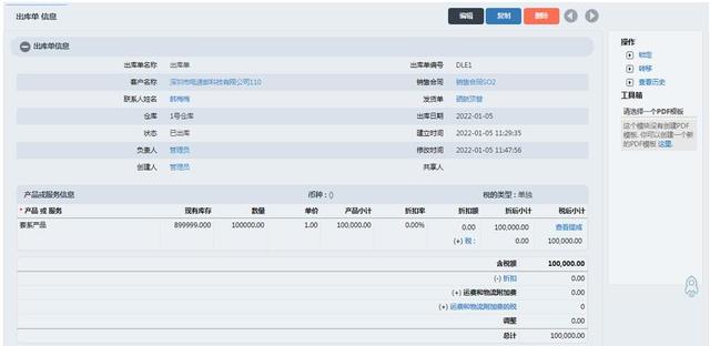 既然是产品出库,那出库单中的主要信息自然是产品信息和仓库信息;用户在创建出库单的时候可以直接从系统中选取出库的产品形成清单,系统会根据需要出库的产品数量、单价以及其他折扣等信息自动计算出相关金额。