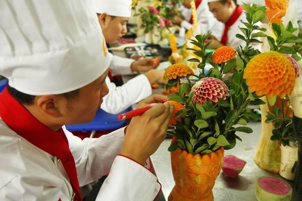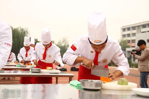 其实,刀工对于一个厨师来说很重要,作为厨师的一项基本功,出色的刀工会让厨师增色不少,在郑州新东方烹饪学校有这样一群厨师,他们的刀工同样了得:蒙眼切菜、气球上切肉,切丝穿针—……这些展示刀工的绝活都不在话下,更不用说日常的切丝、切片、切丁。然而出色的刀工离不开学校对学生刀工培样的重视和他们日常的刻苦锻炼。要想学好厨师,首先必须练好基本功。这是郑州新东方新生入学更开先听到的一句话,在新生入学的时候,每一位老师都会毫无例外地把基本功的重要性告诉学生。