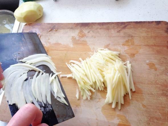 注意别切到手啊,哈哈……开个玩笑,刀要快,手要稳,眼要准,站姿也要标准,不要切个菜,头都差点掉菜上了,既切不好菜还累得慌。最主要的就是反复练习,读书百遍,其意自现,练刀功学技术也是同样的道理。多练习才能做到伸手就业,厚薄均匀,大小一致,粗细长短相同。