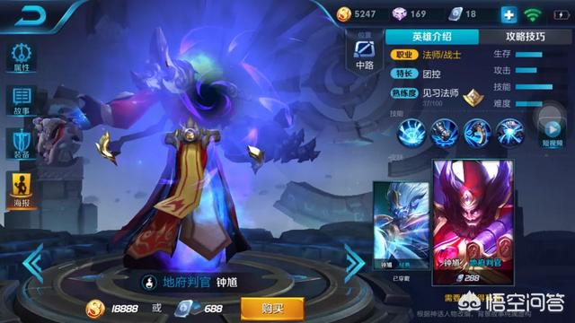钟馗这个英雄就跟英雄联盟上的锤石差不多,也不完全算冷门,但是上场的频率也是够低的。皮肤就一个地狱判官,而且还是最低配288点券的,心酸。钟馗:老子一天勾那么多人,没有功劳也有苦劳啊。