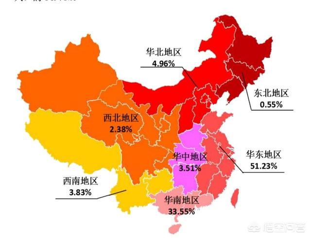 毕业生去往华东、华南、华北、西南、华中、西北、东北区域就业人数分别 为1767人、1157人、171人、132人、121人、82人、19人,其中华东、华南 就业人数占比分别为51.23%、33.55%,合计,占除升学外已就业毕业生总数(3449 人)的84.78%。
