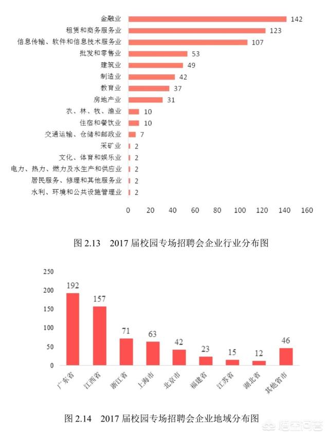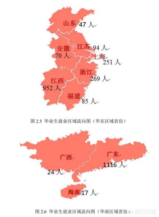 去往华东区域省份毕业生中,952人在江西省内就业,占除升学外已就业毕 业生总数(3449人)的27.60%,浙江、上海人数较多,分别为269人、251人, 与2016届大致相当;华南区域省份中,其中在广东省就业1116人,占除升学外 已就业毕业生总数(3449人)的32.36%。