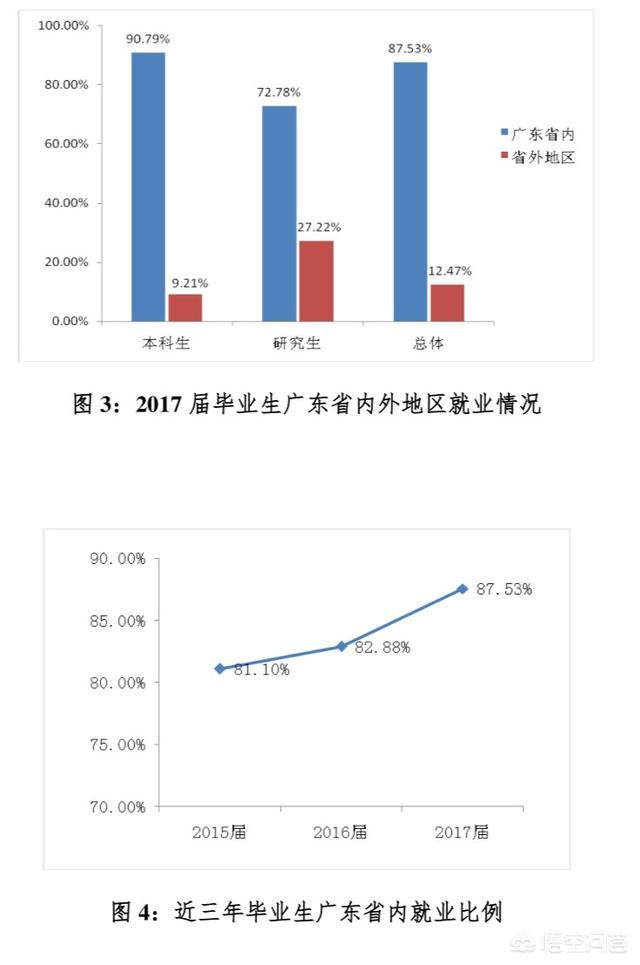 2017届毕业生就业地域主要集中在广东省(87.53%),其中本科生为90.79%,研究生为72.78%。
