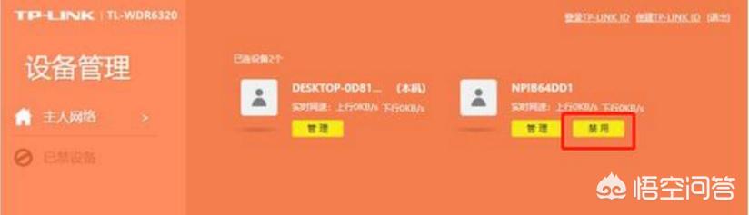 在路由器的设备管理中,查看当前是否有非法用户,使用你的网络上网;