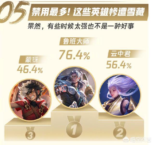 鲁班大师t0辅助,禁用率高达76.4%可以预见,但是蒙犽和云中君竟然也有这么高的禁用率,这个问题交给你们,你们觉得,蒙犽和云中君,有什么资格拥有这么高的禁用率呢?评论区说说你的想法吧。