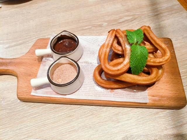这也就是西班牙版油条,和我们中国的油条不太一样!它这个可以配着糖霜或巧克力酱吃!