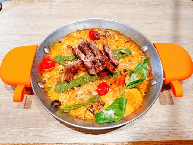 大家可能都听过西班牙海鲜饭!但这个罗勒牛排西班牙饭也是西班牙美食中必吃的经典。配的罗勒酱配上松软的米饭,再来口牛肉!简直绝了!