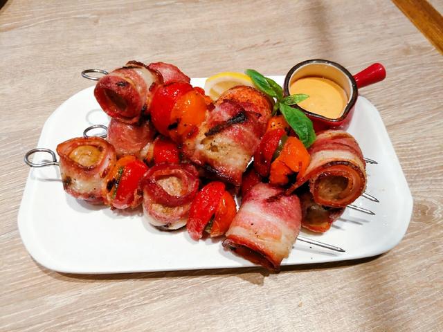最爱吃肉了!脆脆的培根裹着多汁的香肠!真的很棒!不得不说,西班牙香肠真的很好吃!