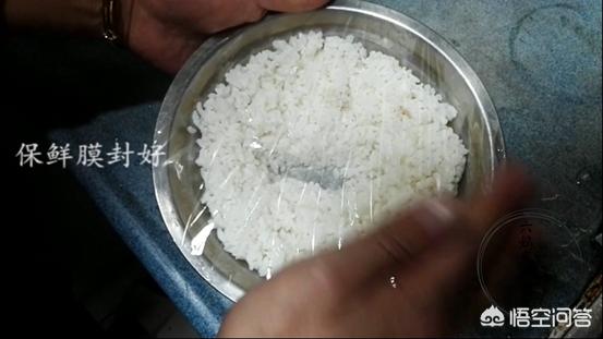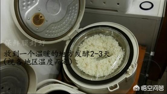 2. 然后把它放到一个干净的大碗里(无油无水),平铺开一点,中间留个坑,为了让后续几天能看到发酒糟的状态。然后用保鲜膜把碗封好,放在家里温暖的地方,可以是烤箱里面或者电饭锅里。不要放在冰箱,因为这样不会出酒糟的。