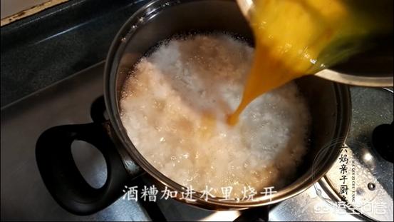 1)酒糟(米和酒一起)放入锅里,倒入一大碗水, 大火烧开转中火。煮上3分钟左右。