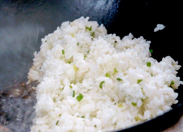 (1)油锅加热,放入米饭炒匀;(如果有猪油的建议猪油,炒饭会更加的香)