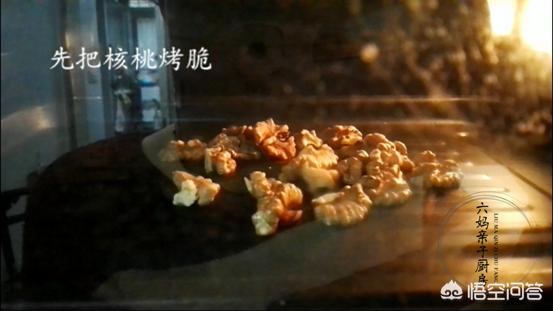 核桃仁可以先放烤箱里烤几分钟,然后压碎待用, 脆脆的口感更好吃。嫌麻烦的朋友也可以跳过这一步,直接用生的核桃仁。