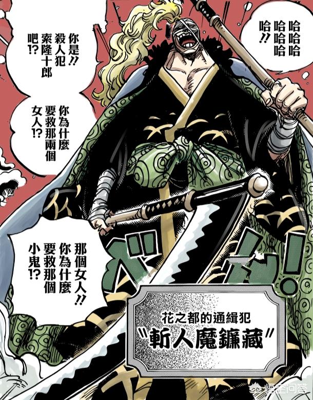 斩人魔镰藏顾名思义是出现在和之国的一个罪犯,他的实力很强。在和之国这种武士之国也没有人是他的对手,每次都是一刀就可以把对手给解决掉。除了凯多的人出手之外其它人根本就不是他的对手。