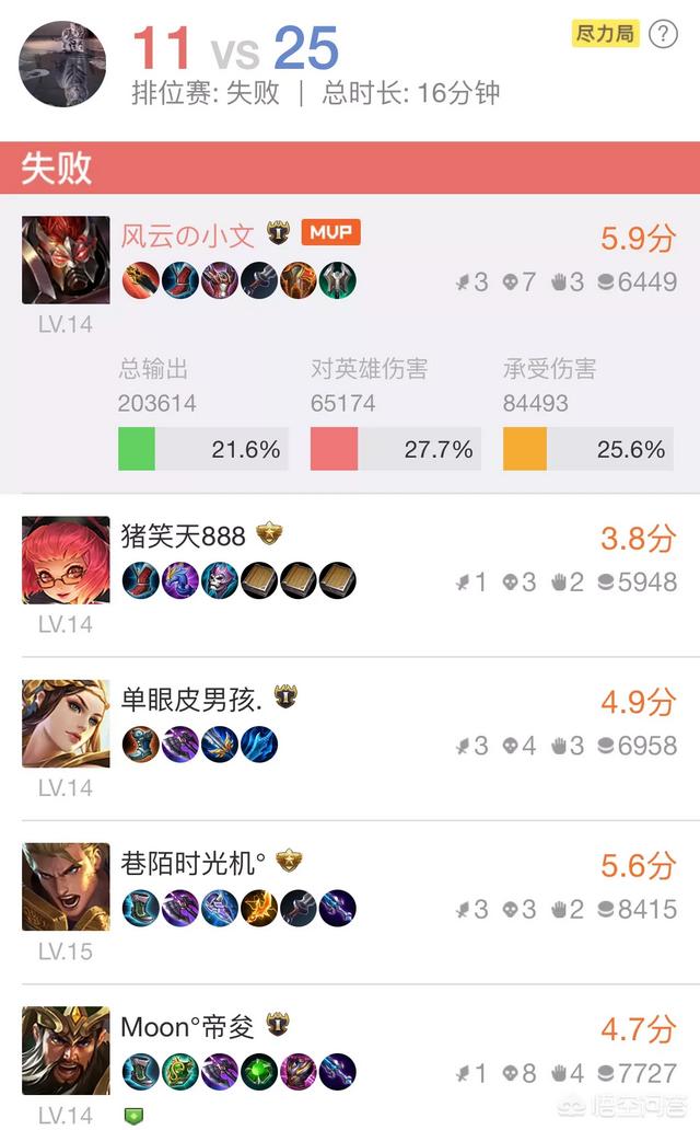高端局打字极少,全看走位意识,哪里会一直没人支援。然而就算大家知道她是演员也举报不了!因为她不是没技术,只要稍微捡下人头,绝对举报失败。比赛中关羽整场暴走,他应该是很想赢,无奈对手不菜!四打六高端局必输。最后恭喜安琪拉成功又掉了一星,很快青铜了,又可以虐菜刷战力了。演员是游戏最让人痛恨的,只要演技过关,没人能拿他有办法,演员不止毁掉一场比赛也会毁掉整个游戏。