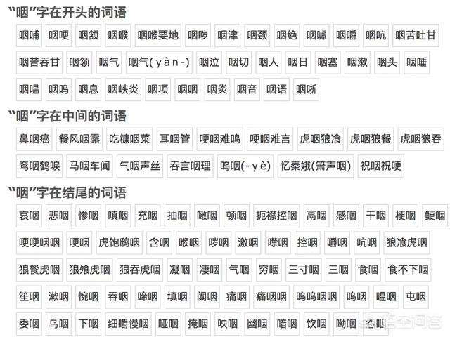 “咽”字可以组什么词?