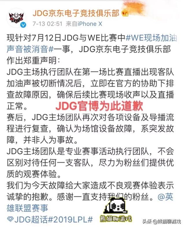 JDG打野小夫因为前段时间的梦游试操作将JDG送上了风口浪尖,但是近期JDG对战WE的主场中,WE的助威声却是被意外消音了,引起了网友们的轰动。这一场比赛中,JDG的助威声震耳欲聋,但是到了WE的时候刚有一点儿音就消失了。JDG官方也是对比做出了紧急回应,表示是设备出现了问题。然而对于这样的一个奇特理由,有网友表示他宁愿相信常威不会武功,都不会相信这个理由。