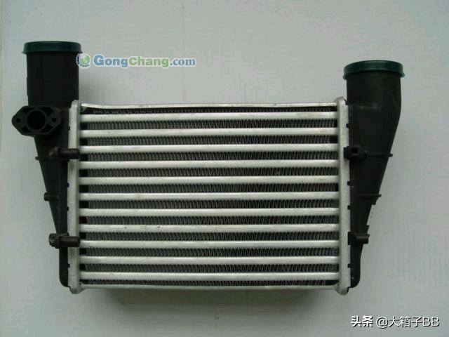 因为现在的涡轮增压器转速高达十几万转,空气在被压缩的过程中密度会升高,这必然也会导致空气温度的升高,从而影响发动机的充气效率。如果想要进一步提高充气效率,就要降低进气温度。有数据表明,在相同的空燃比条件下,增压空气的温度每下降10 ℃,发动机功率就能提高3%~5%。如果未经冷却的增压空气进入燃烧室,除了会影响发动机的充气效率外,还很容易导致发动机燃烧温度过高,造成爆震等故障,而且会增加发动机废气中的NOx的含量,它的作用则是为了提高涡轮增压发动机的换气效率。发动机中冷器的作用是降低增压后的高温空气温度、以降低发动机的热负荷,提高进气量,进而增加发动机的功率。中冷器的作用是降低发动机的进气温度。一般由铝合金材料制成。按照冷却介质的不同,常见的中冷器可以分为风冷式和水冷式2种。(1)风冷式 利用外界空气对通过中冷器的空气进行冷却。优点是整个冷却系统的组成部件少,结构比水冷式中冷器相对简单。缺点是冷却效率比水冷式中冷器低,一般需要较长的连接管路,空气通过阻力较大。风冷式中冷器因其结构简单和制造成本低而得到了广泛应用,大部分涡轮增压发动机使用的都是风冷式中冷器(2)水冷式 利用循环冷却水对通过中冷器的空气进行冷却。优点是冷却效率较高,而且安装位置比较灵活,无需使用很长的连接管路,使得整个进气管路更加顺畅。缺点是需要1个与发动机冷却系统相对独立的循环水系统与之配合,因此整个系统的组成部件较多,制造成本较高,而且结构复杂。水冷式中冷器的应用比较少,一般用在发动机中置或后置的车辆上,以及大排量发动机上.