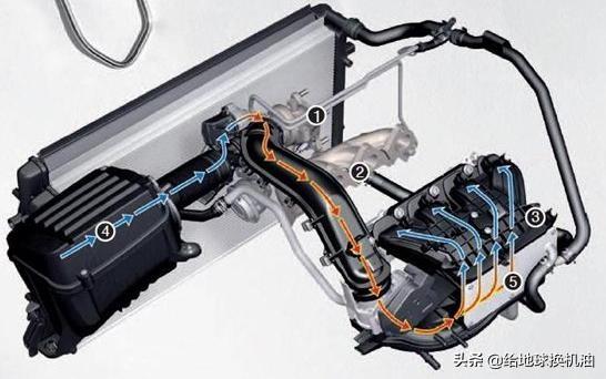目前大多数涡轮增压车型使用的是废气涡轮,工作原理很简单就是利用发动机排出的高温高压废气驱动涡轮增加进入发动机的空气以提升压缩比,那么以高温高压的废气驱动的涡轮因为热传导的因素,那么压缩后进入发动机的气体必然也是高温高压,高温的气体进入发动机这可不行会引起很多问题,比如爆震。那么为了解决这个问题一个非常重要的部件产生了就是“中冷器”,其原理类似于水箱散热器,让进入发动机的气体先经过中冷器进行冷却,使之进入发动机的气体在一个理想的温度范围。