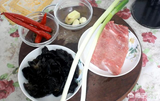 一开始我们先把里脊肉洗净放进冰箱里,这是为了后面能够好切一些,然后我们用开水把木耳泡起来,接下来我们把青红椒、蒜洗净后,我们把青红椒、蒜、红泡椒、泡姜、香葱切成细丝,热锅倒入油后,我们把腌制的里脊肉丝倒入锅中、倒入后紧跟着翻炒,过程一直用大火哦。