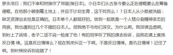 罗永浩在微博多次表示:“我爱日本!”“没有日本的话,亚洲是不值一提的。”“娇滴滴的民族没有未来(中国人的民族情感也比美国黑人还要娇滴滴一万倍)”“支那人不好好学学,光跳脚骂娘是没用的……”不过,罗永浩突然如此“挑逗”,网友称可能是想给自己“打广告”。