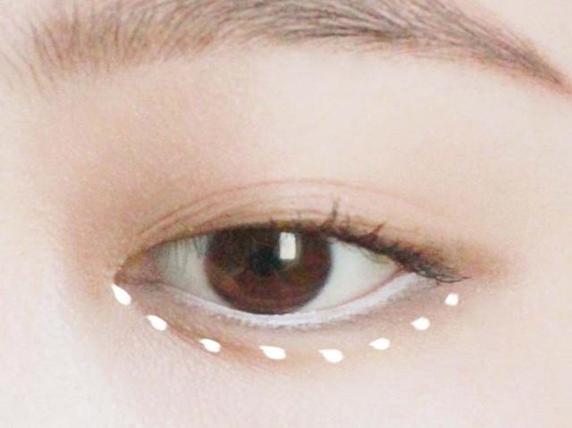 第5步:修饰下眼线。用白色的眼线笔描好下眼线,可以使眼睛看上去大一点。
