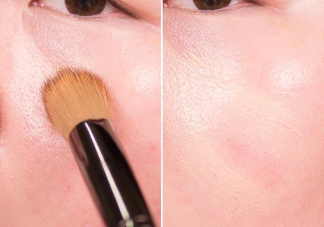 STEP2:将粉底液涂在脸上,然后用刷子或者海绵蛋刷匀。