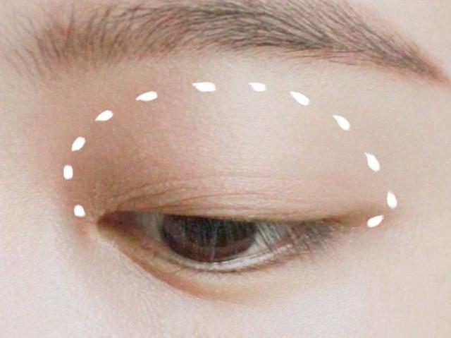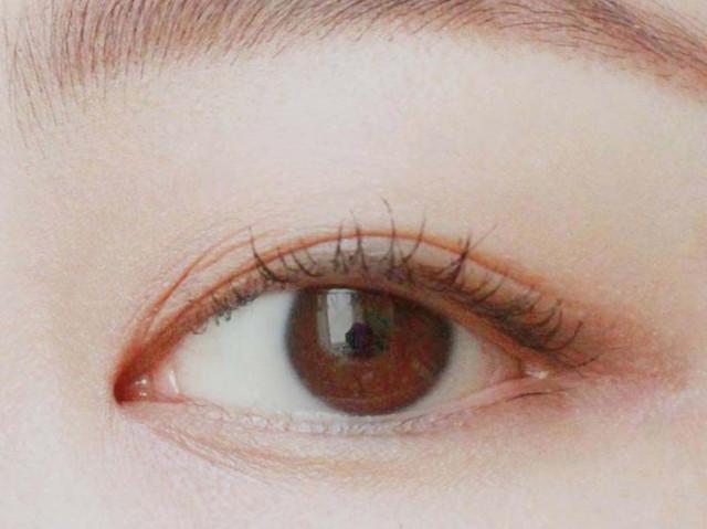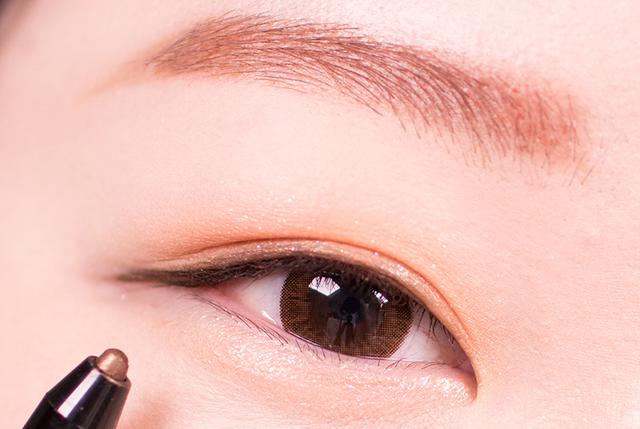 STEP4:使用眼影笔大面积涂抹在双眼皮内,然后用手指向外晕开。眼线笔使用棕色的更加自然。
