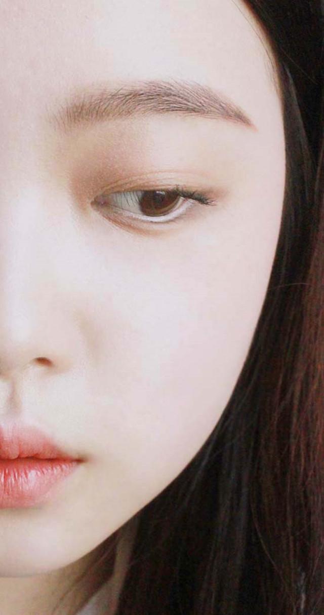 韩妆基础的眉毛就是一字眉,上下画两条平行的线,然后眉尾的位置连接起来,今天画的是一个前面一字眉,后边稍稍向下的,一是为了照顾我的大脸,二是这样的眉型也显得温柔。画完用刷子刷的自然一点,尤其是眉头要刷虚。