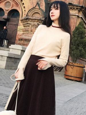 一身浅色系的上衣,搭配上一款黑色的半身长裙,自然披散的直发,白皙的笑脸,时尚唯美更迷人。