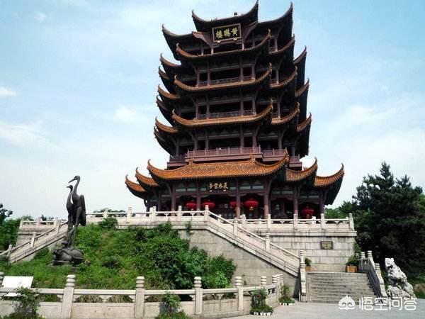 黄鹤楼位于湖北省武汉市,高居巍巍蛇山之巅,濒临滔滔长江之畔,飞檐金瓦,宏伟壮丽。是国家5A级旅游景区,古时它与南昌滕王阁、岳阳岳阳楼并称江南三大名楼。