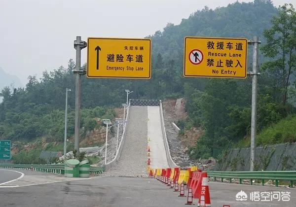 在连续下坡路段发生刹车失灵,还可以借助车道旁设置的紧急避险车道来进行减速。减速车道内有沙石和起伏路面,可以帮助车辆减速。