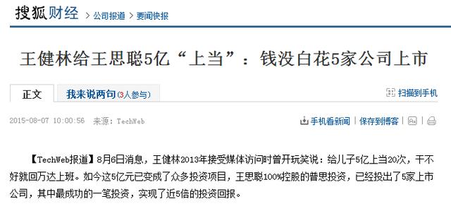 王思聪,一提这个名字,我们首先会想到首富王健林的儿子,“万达的公子”,其次网络红人,在微博上有着2353万粉丝,高调张扬,不知低调为何物。人们对他的评价褒贬不一,但其实群众们可能只看见了他在微博上嬉笑怒骂,却不知“王校长”跟他爸爸一样,也是投资好手。