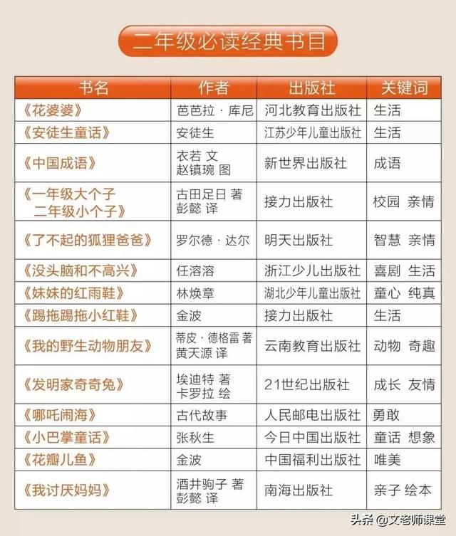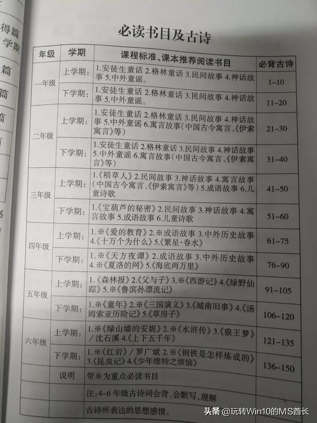 给你拍一张我的孩子学校所发的书目的照片吧,就不打字了,从小学一年级到六年级,一览表的形式,一目了然。