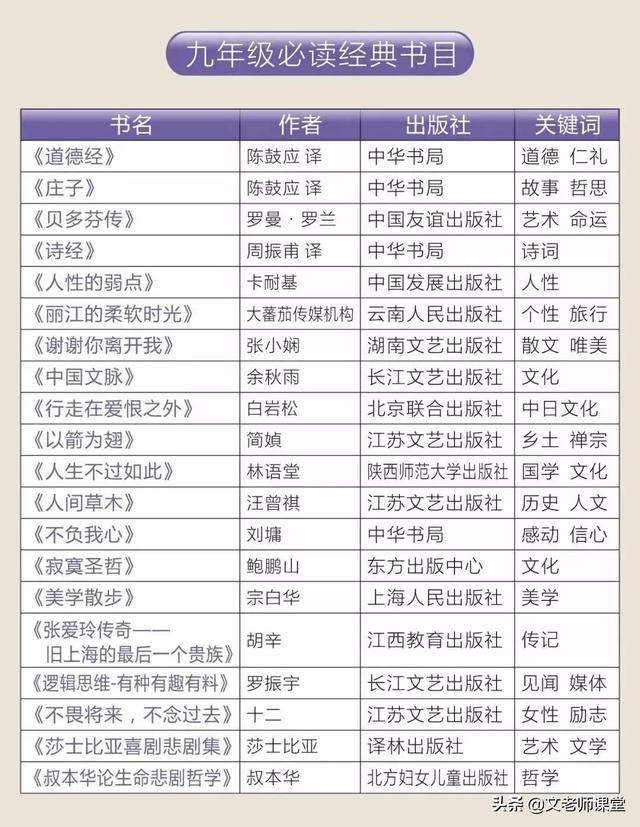 《故事新编》《女神》《骆驼祥子》《子夜》《围城》《家》《屈原》《毛泽东诗词选》《雷雨》《四世同堂》《红岩》《谁是最可爱的人》《青春之歌》《青春万岁》《寄小读者》《傅雷家书》《平凡的世界》