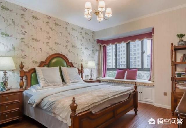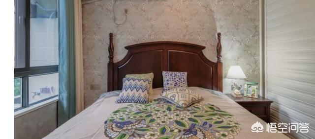 次卧没有做过多的设计,墙面使用美式小花墙纸,由于房间位置有限就只能放一个床头柜,美式风格大床睡眠就是舒适。