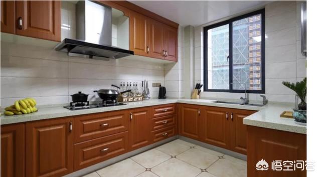厨房一切做法都首先是以实用为主,根据现场位置制作了U型橱柜充分划分了操作区域,可实现多人同时操作。橱柜完成后厨房呈现出实用、简约的效果。