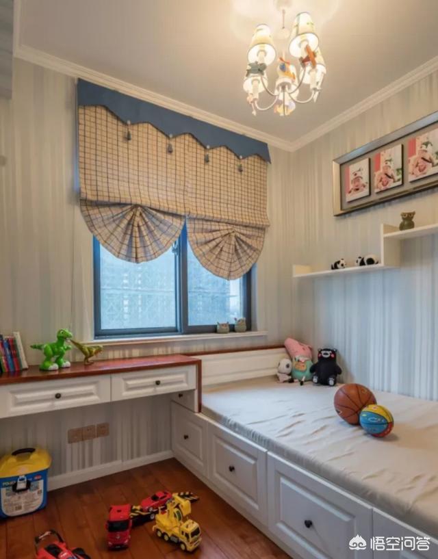 主卧室本来是自带卫生间的,装修时将卫生间改造成衣帽间,制作了L形开门衣柜,窗户下方制作梳妆台。南边的的水泥飘窗台拆除后改造为飘窗矮柜,处处为扩大收纳空间而考虑。这样的整体改动后主卧从使用角度,文化气息,生活氛围都是直线提升。次卧