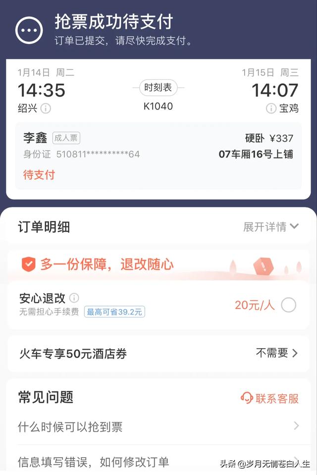如果自己忘记了提前预定,只能通过候补方式了,提前填好自己的订单,当有票时系统会自动帮你订上。