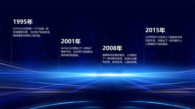 用具有科技类线条的图片,制作科技公司的发展历程。