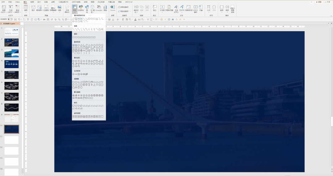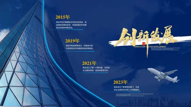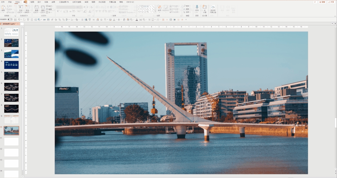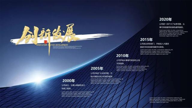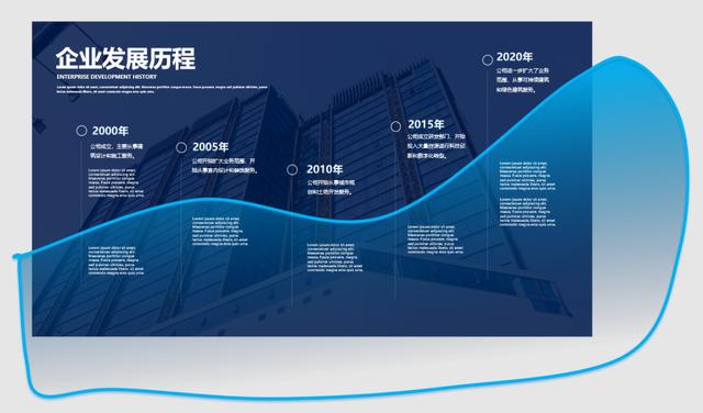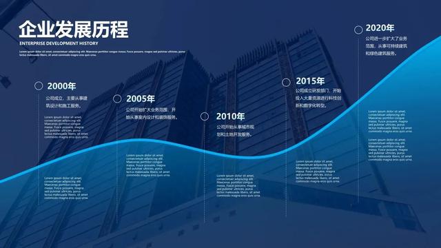 找到大楼图片的 "建筑线条" 作为轴线来制作发展历程 PPT。