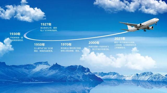 将以往时间轴中单调乏味的直线换成带有明确线条的图片素材,让 PPT 时间轴更生动!