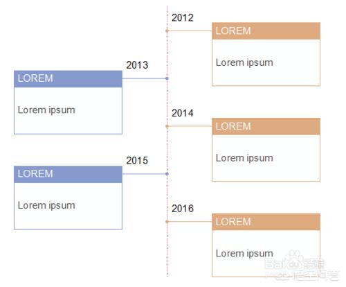 前面讲到的时间轴制作方法,都需要一条时间线作为指引,而这种利用元素替代时间轴线(例如一个产品图、一个创意图形等),可以让时间轴更加生动、有趣,更加直观、具体,更好地呈现出主题的内容。