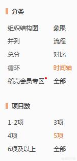 点击页面右侧,选择分类为时间轴,项目数为5项: