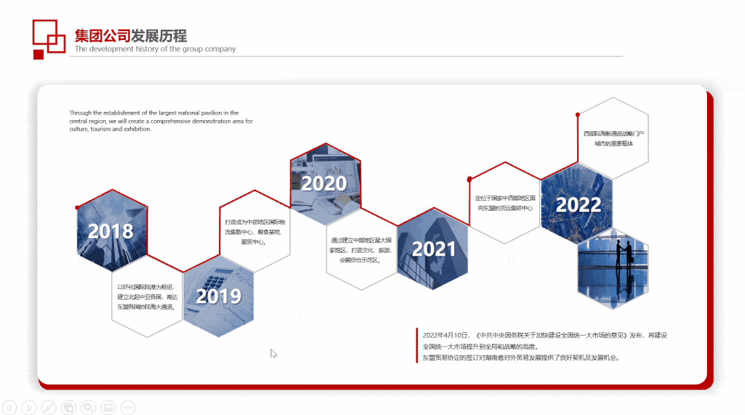 或者用PPT缩放定位动画来制作交互式 PPT 时间轴。