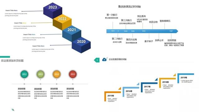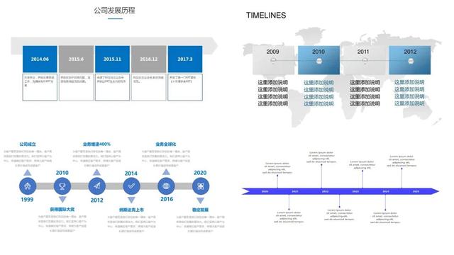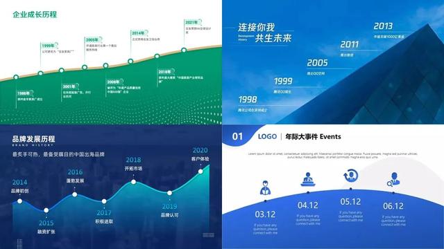 当然对于时间轴的制作方法,还有很多很多,但是万变不离其宗,只要掌握了 PPT 排版的基础技巧,用你的图片,你的内容如何更改,你都能制作出精美的 PPT 时间轴!